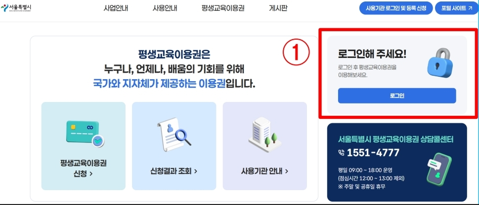 1. 평생교육이용권 지자체 홈페이지로 들어갑니다.
